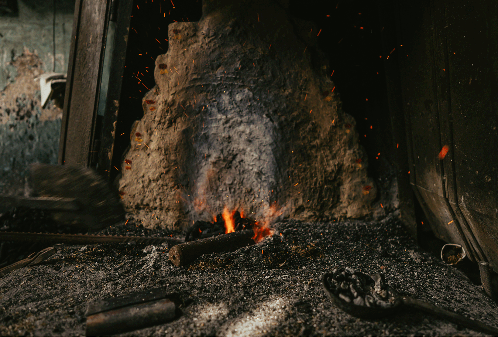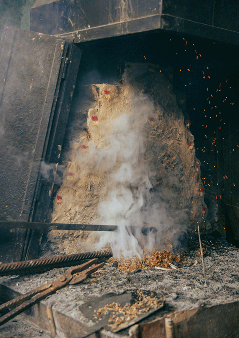 Fire that is kept burning all day in the forge is symbolic of the constant demand for the tool - a basic entity used in the production and management of food, shelter, defense, art and craft - since prehistoric times.